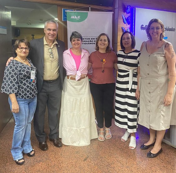 Representando a Universidade Federal do Triângulo Mineiro (UFTM), participaram do encontro a coordenadora do Curso de Aperfeiçoamento em Mentoria de Diretores Escolares, Professora Waleska Dayse Dias de Sousa, que apresentou a experiência do projeto de extensão fruto da parceria entre UFTM, MEC e UFSCAR.